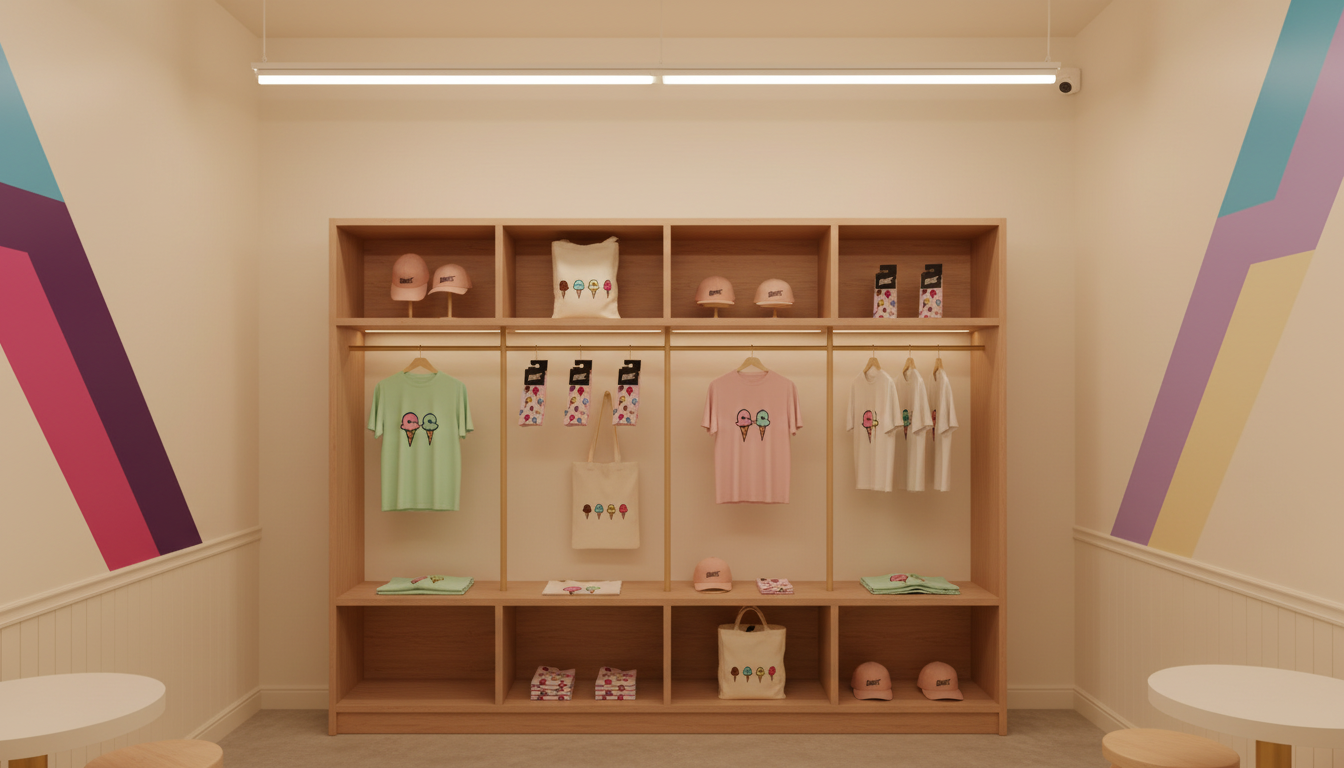 within these stores will there not only be a variety of flavors to sample and choose from, but larger tubs of signature flavors - classics likely to resonate with people, like Cookies & Cream - will be available for purchase. merchandise featuring the ice cream logo will also be available in-stores.