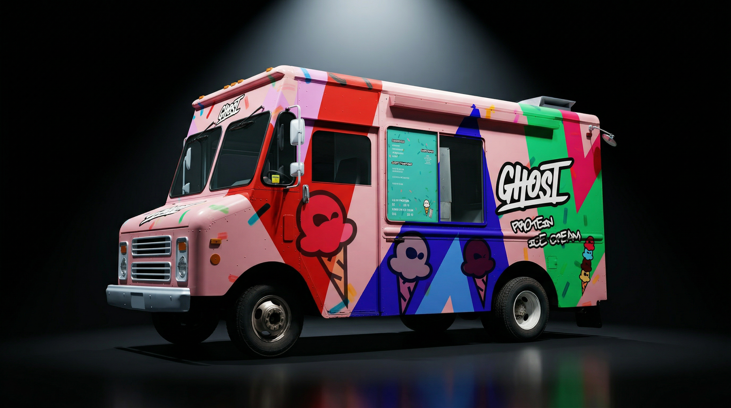 it just makes sense to also make an ice cream truck. so long as the target gym has a parking lot, Ghost can meet their audience right when they’re leaving the gym. great if the gym-goers are just a bit too exhausted to walk to the shop. or if it feels just too hot to make the trip. instead they can get their protein treat between the gym and their car. i don’t know abut you, but i’d definitely want to check it out.