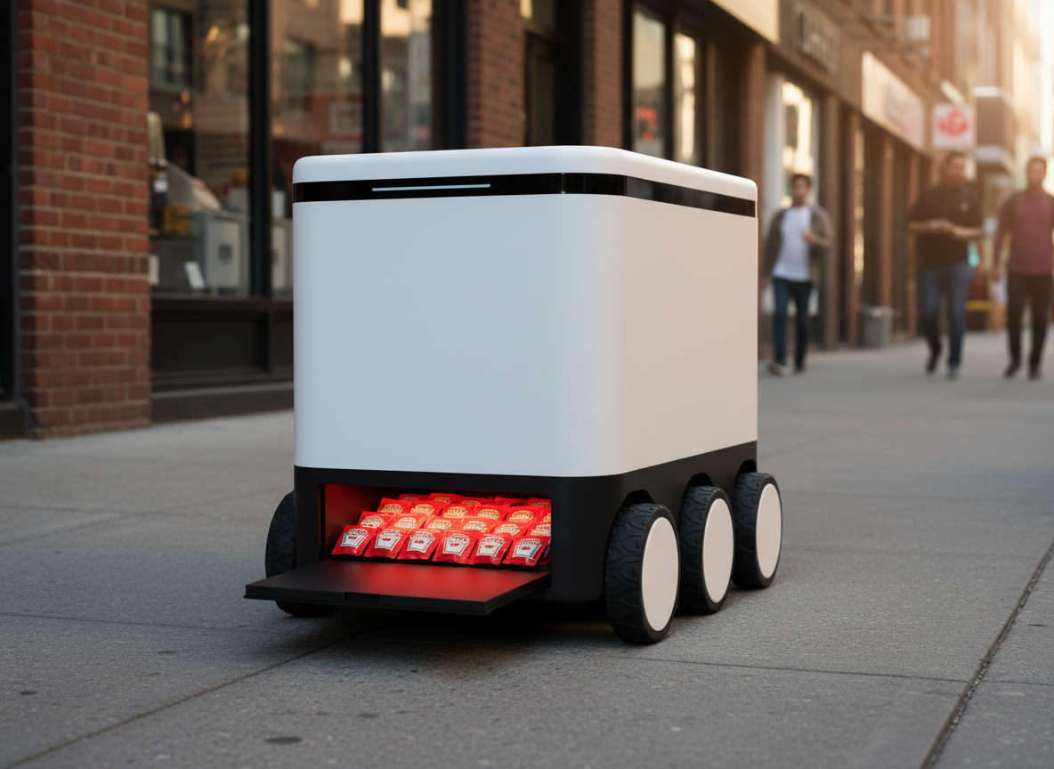 so what if we were to equip these with an “emergency” compartment for sauce packets? now, with the click of a button, that idle bot a block away is headed right to you.